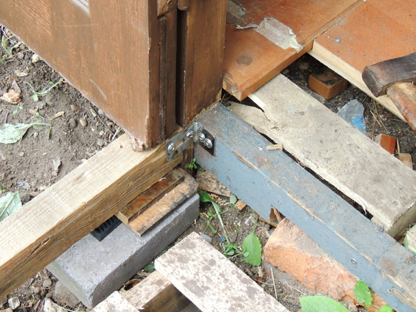 Another joint made from whatever materials were found. Some sort of shelf bracket off some old furniture, I think...