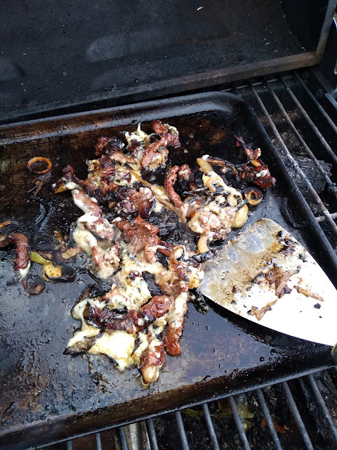 About halfway through griddling the meat and onions, before it started browning and crisping up